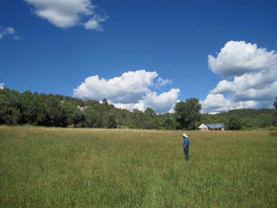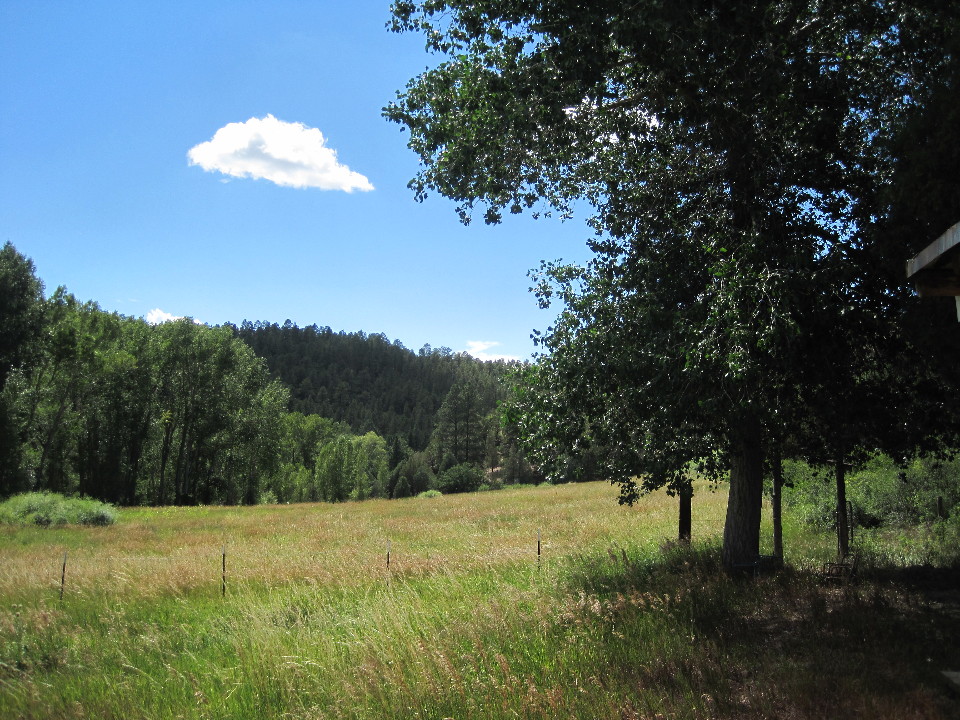 The land speaks of generations of lives lived on it, of the births and deaths, of struggle and determination, success and defeat. But, mostly, it embodies hope. Here, in the depths of this dry season, in the midst of deep drought, the Rio de las Trampas still runs at the base of the arroyo. The ponderosa, pinon, juniper and cottonwood still stand. The hayfield has put up its mixture of grasses and I listen to the birds sing, as chipmunks argue with Wes.