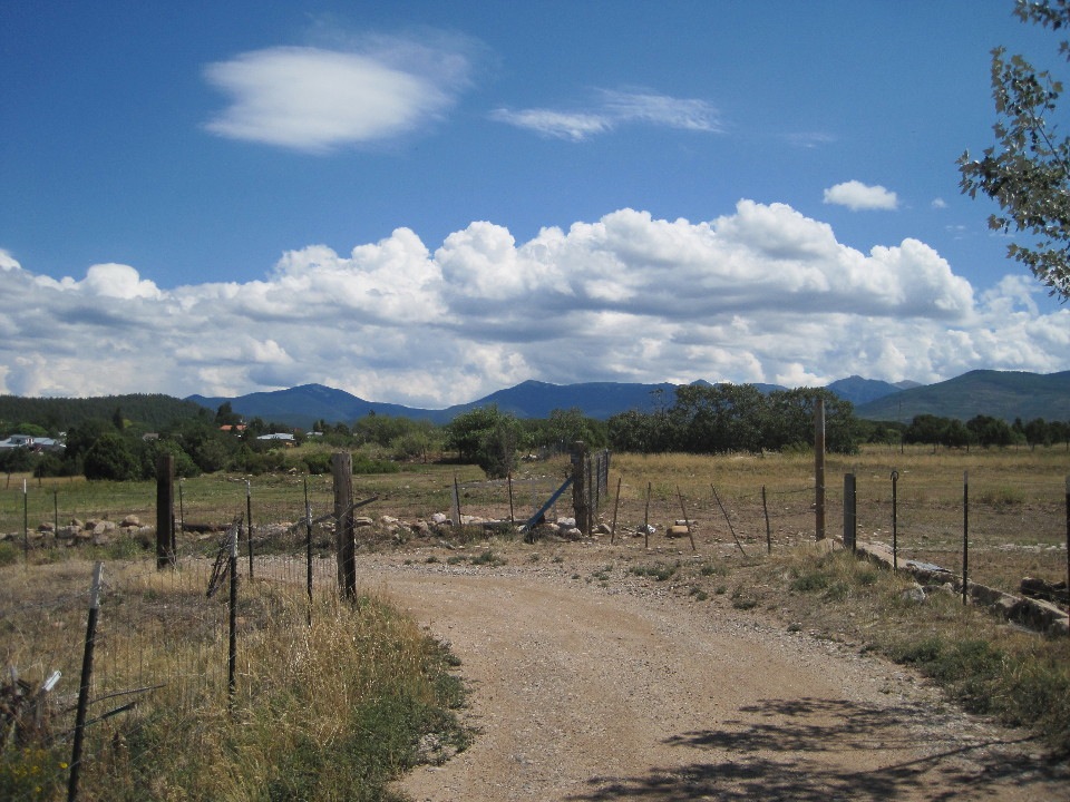 I finished shopping, enjoying the drive back up the mountain as much as the drive down, and arrived in Truchas in time to have a margarita at the gallery with Craig. And just when I thought it couldn’t get any better, a gorgeous, unexpected thunder storm swept in, freshening everything with glorious rain.