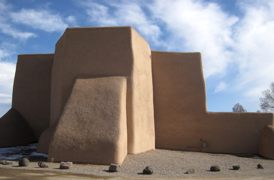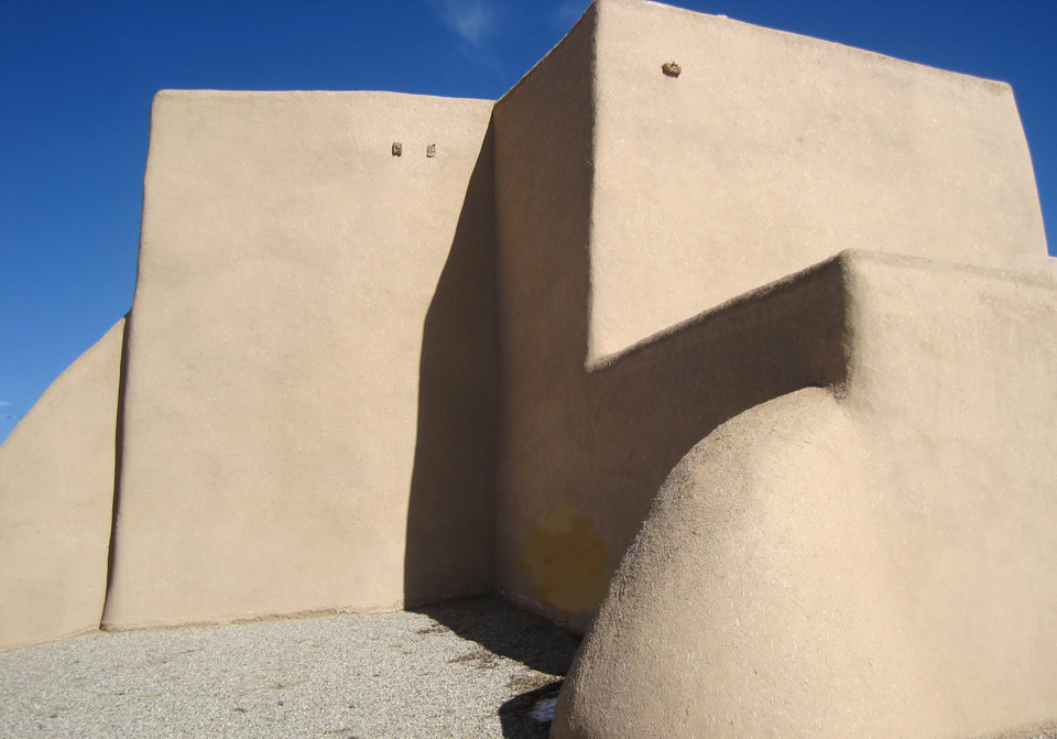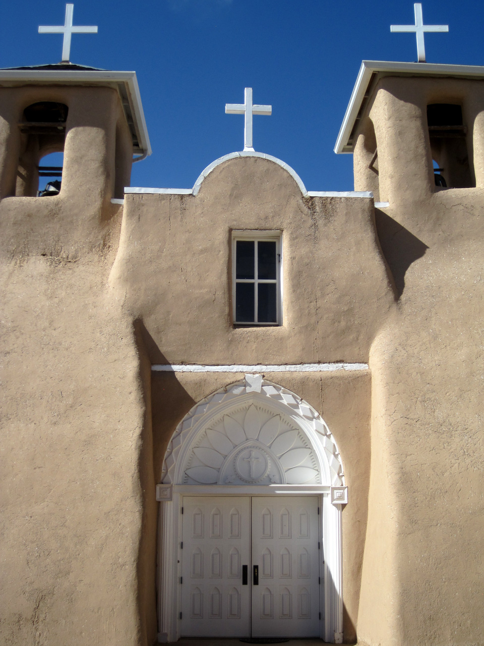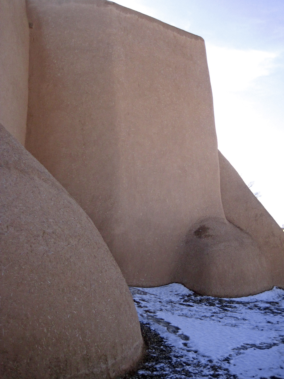 Anna and I went to Taos the other day specifically to get some photos of the church to share with you. Interestingly, it is the back of the structure that is most compelling. No photos are allowed inside, so I’m afraid I can’t share that with you. You’ll need to come for a visit yourselves to experience the stunning art that is housed there.