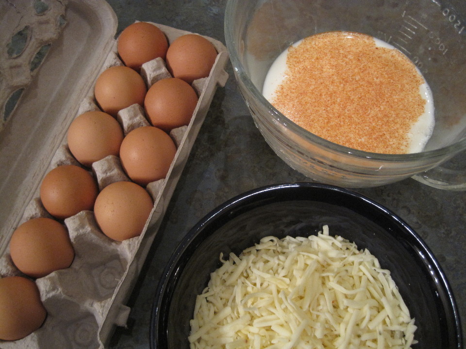 In a medium bowl combine eggs, milk, salt and cayenne. Pour over